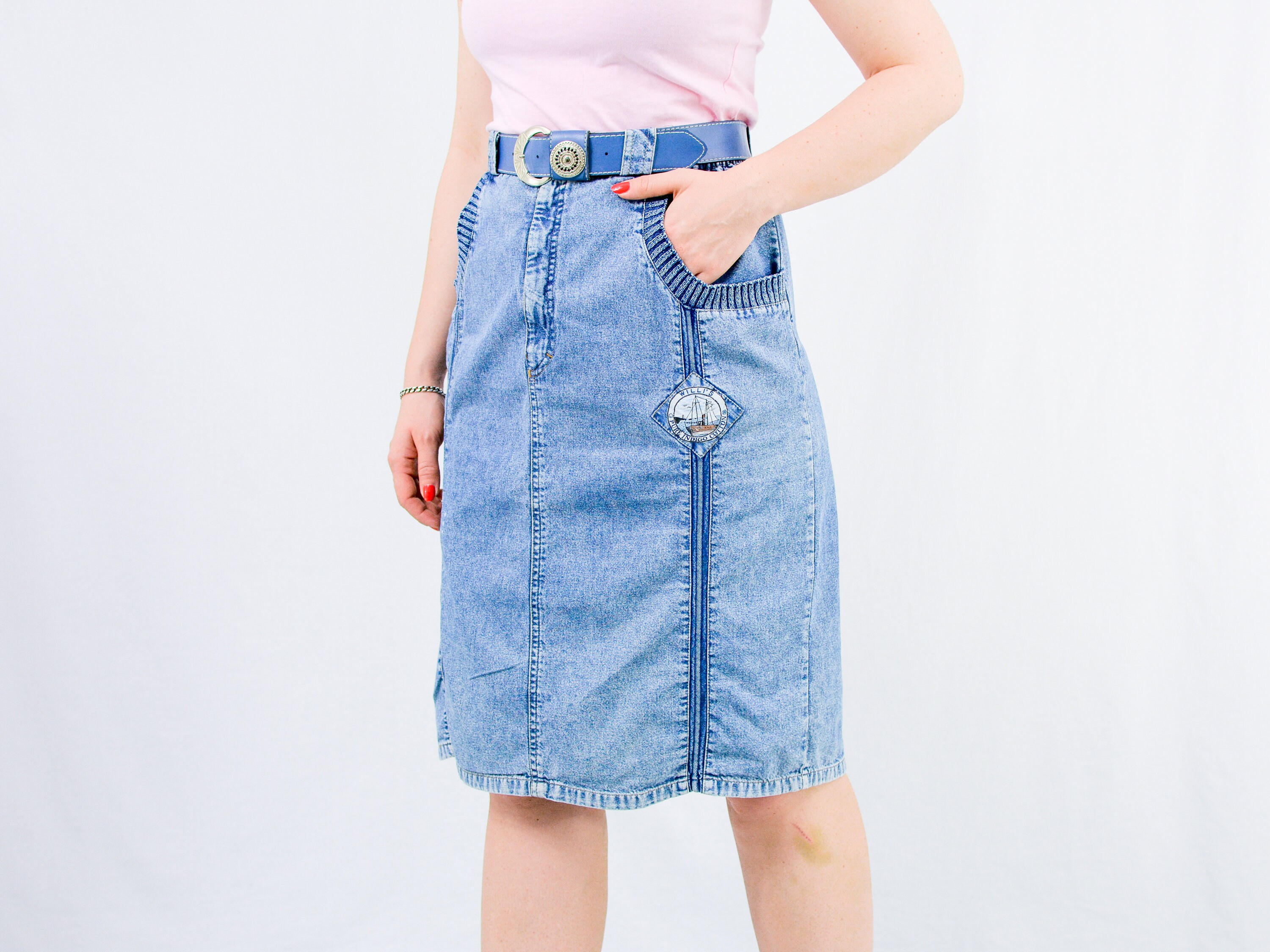 Denim Skirt 33 Waist Etsy